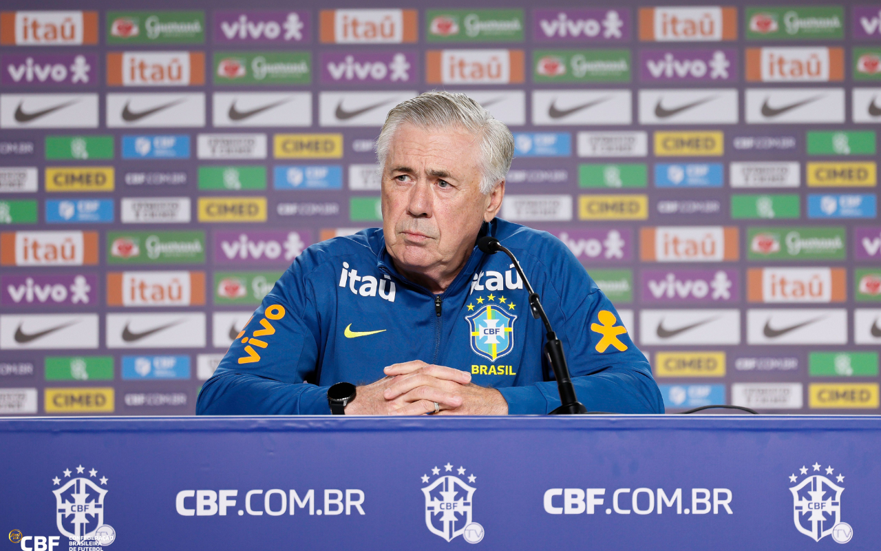 O técnico Carlo Ancelotti projetou sua estreia no comando da Seleção Brasileira no Maracanã, em entrevista coletiva na Granja Comary, em Teresópolis (RJ), nesta quarta-feira (3), data em que completou 100 dias à...
