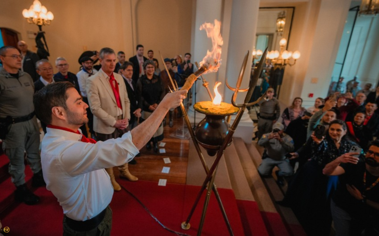 A centelha da Chama Crioula chegou neste domingo (14/9) ao Palácio Piratini, em Porto Alegre, marcando a abertura oficial da Semana Farroupilha 2025. O ato contou com a presença do vice-governador Gabriel Souza, que recebeu o fogo...
